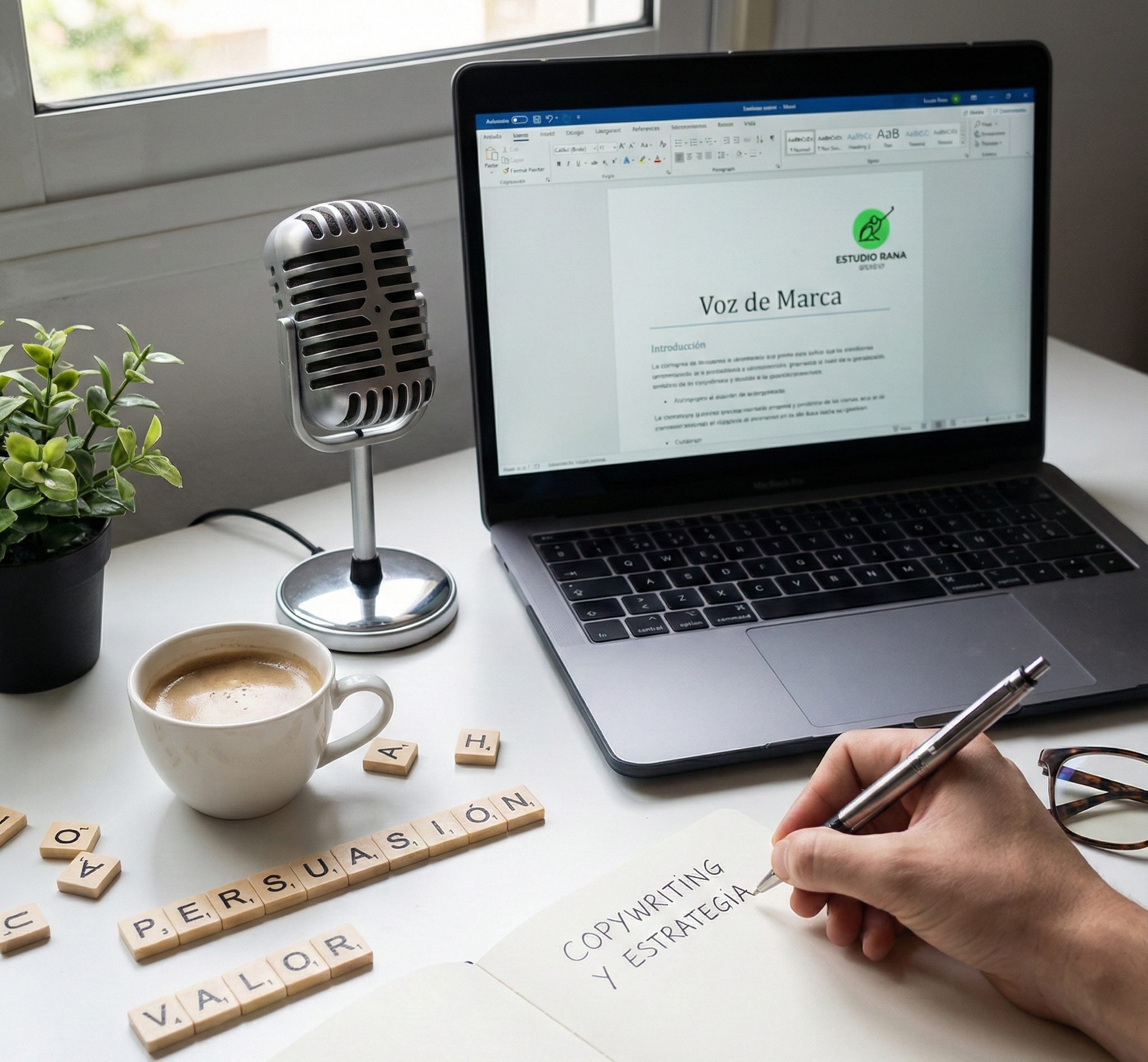Copywriting y estrategia de contenidos: la voz de tu marca El copywriting y estrategia de contenidos son el complemento indivisible del buen diseño gráfico. De nada sirve una identidad visual potente si el mensaje textual es confuso, genérico o aburrido. En Estudio Rana creemos que la voz de una marca